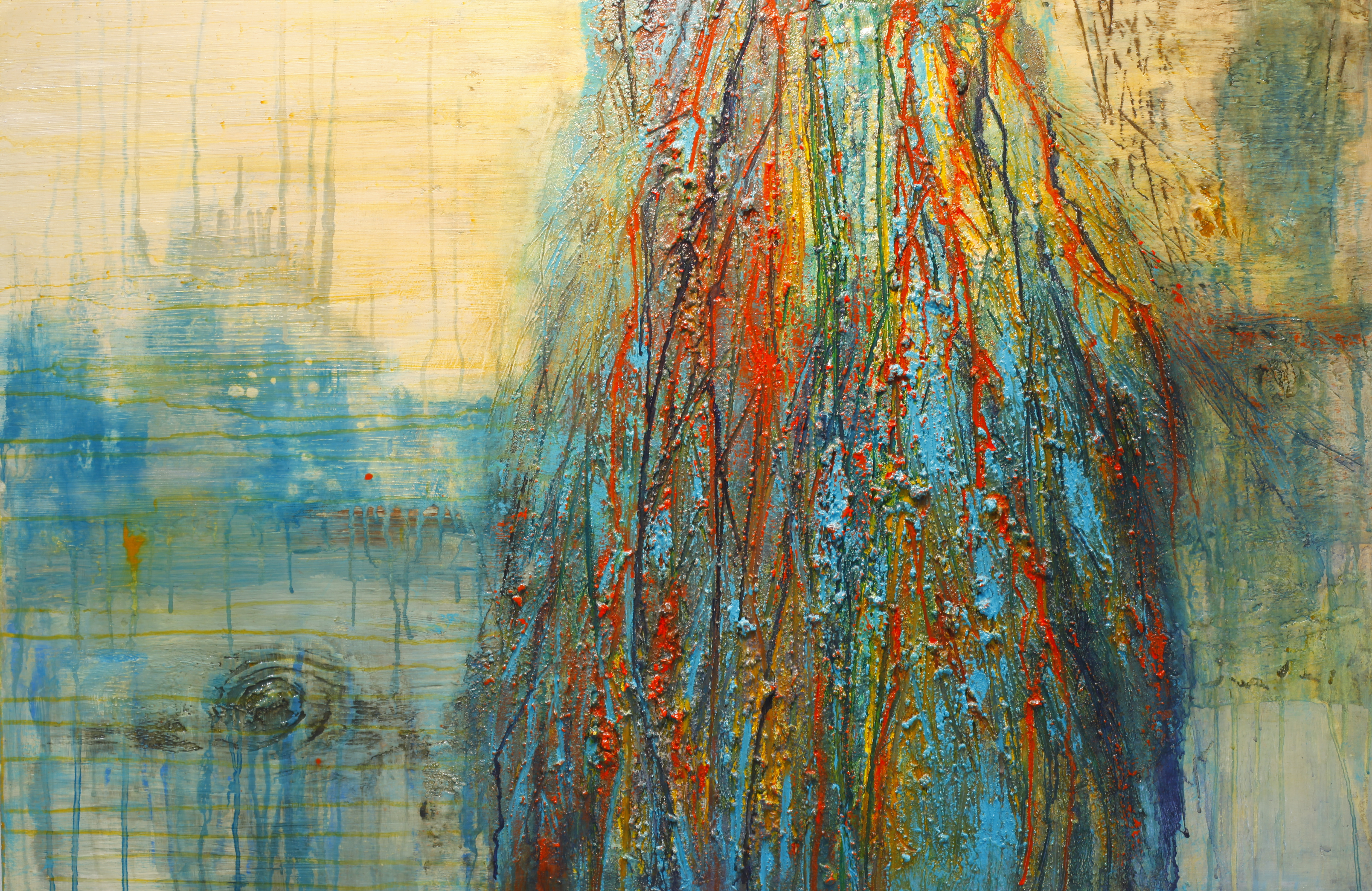Deepmixed media and acrylic on wood panel, 36" x 48", $3000