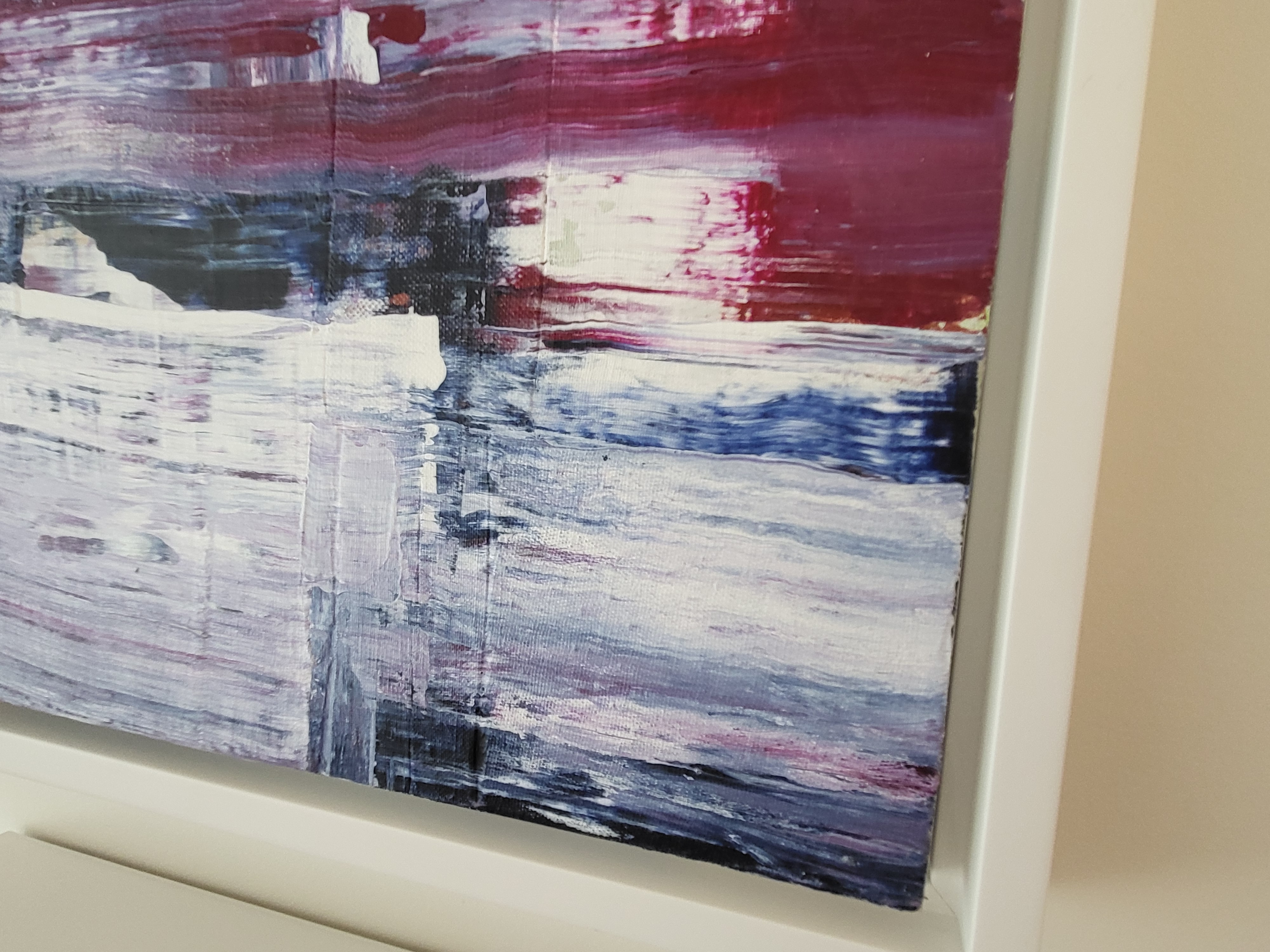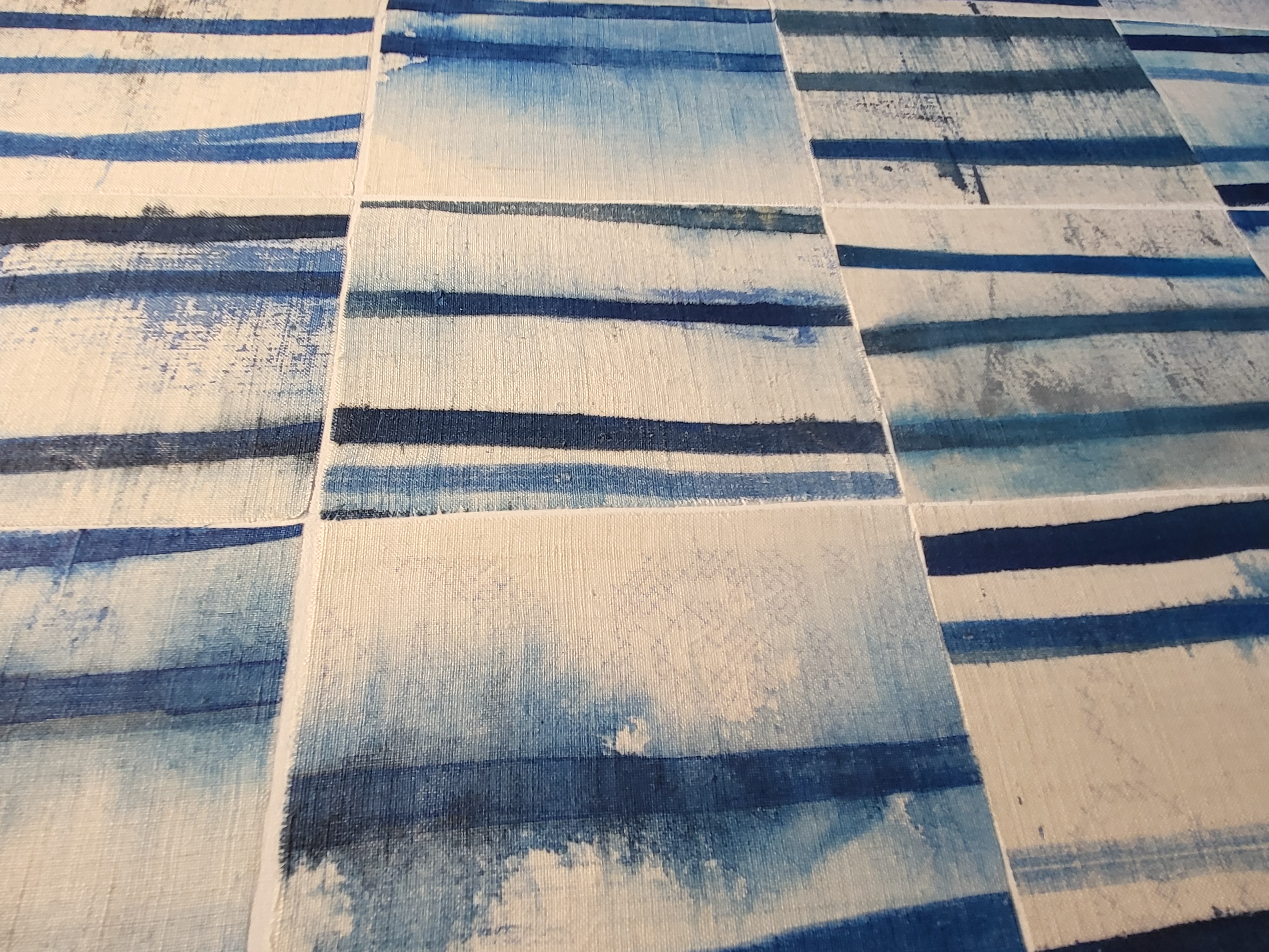 Deconstructed Linesdeconstructed linen tablecloth with acrylic on canvas stretcher, 36" x 48", $3000