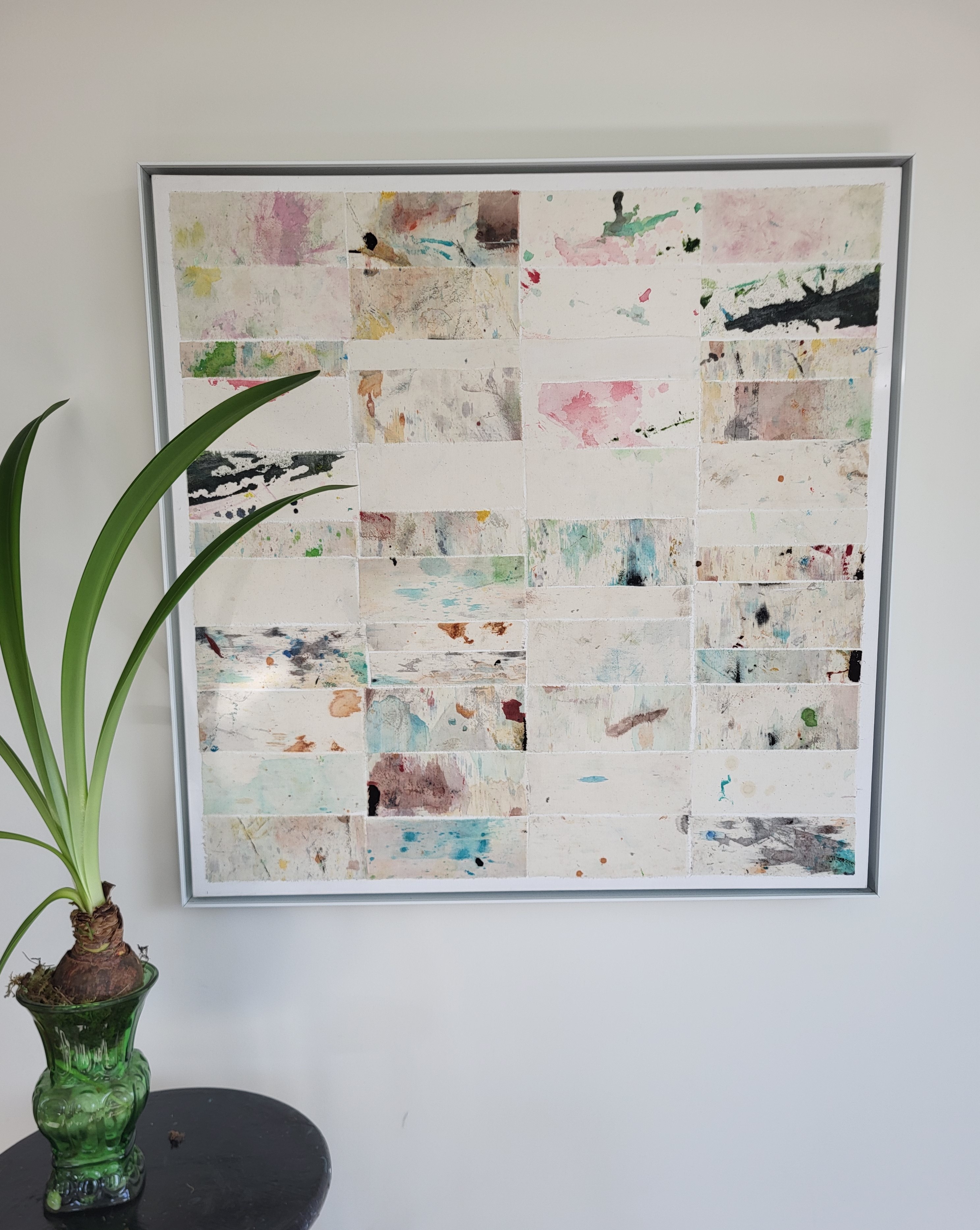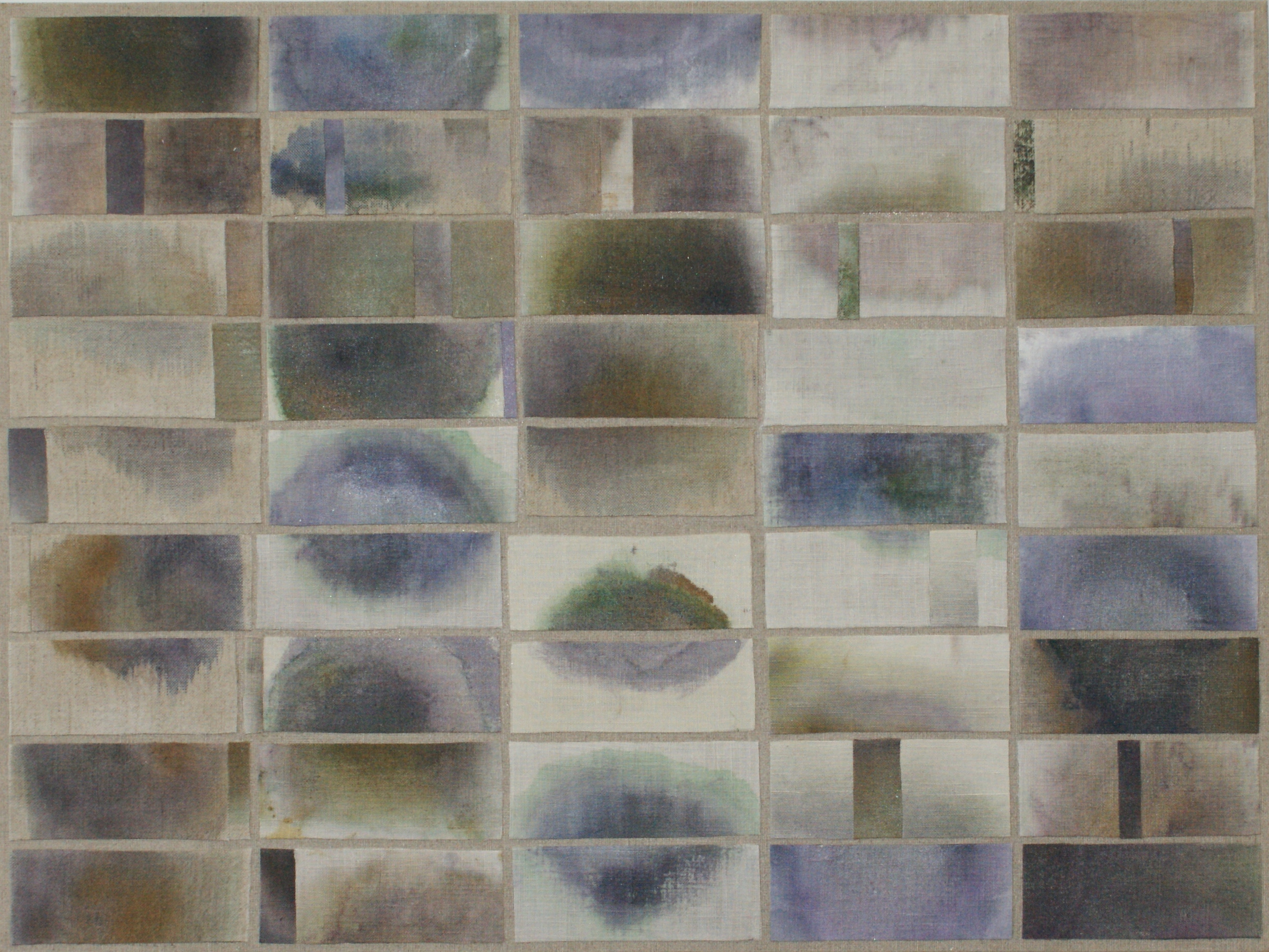 stained linen collage on linen canvas, 18" x 24", 2020, $960
